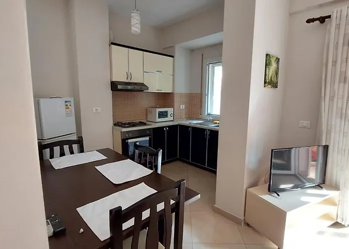 The 50 m² Apartment Vlore Am Meer is located 3.3 km from the New Beach and about 25 minutes' walk from Bora Bora Beach. This 1-bedroom apartment features Wi-Fi and a private parking lot on site.